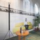 Lampada da terra a luce indiretta. Lampadina con riflettore. Stelo di ferro smaltato vetrificato. Gambe in metallo zincato verniciate a liquido.